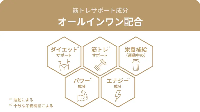 必須アミノ酸9種に加え、トレーニングを支える成分を黄金比でマルチブレンド。