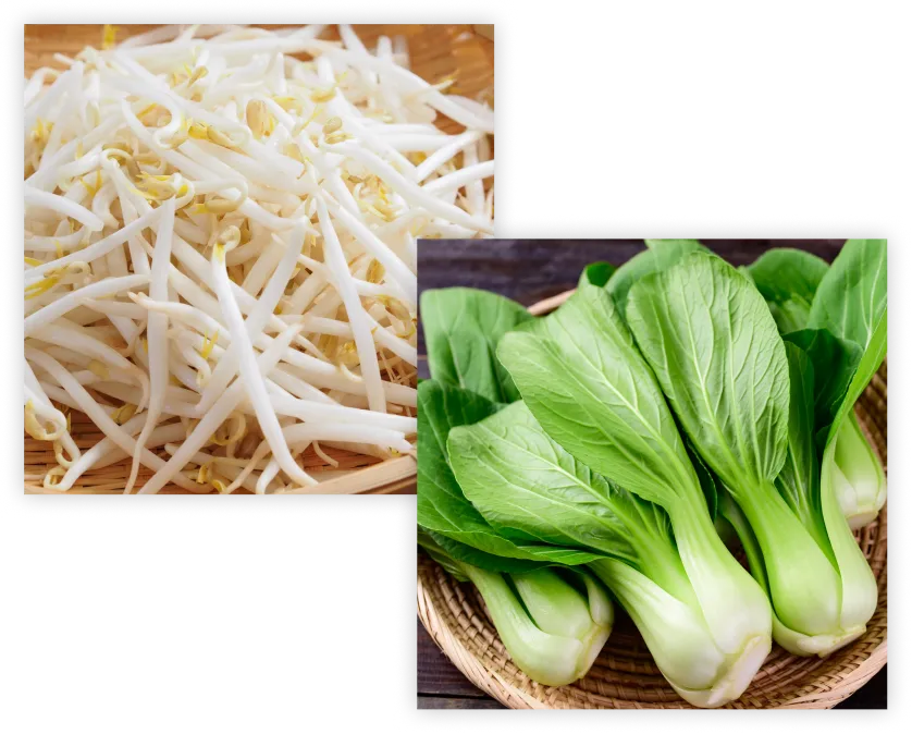 タンパク質を摂るだけでなく、食べる楽しさも感じられるよう、チンゲン菜やもやしなどの具材を加えました。