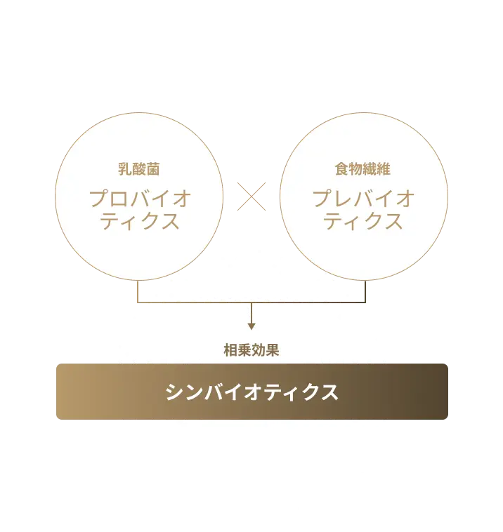 乳酸菌と食物繊維を掛け合わせたシンバイオティクス処方によって、善玉菌が健やかな生活を応援。栄養素が健やかに吸収されて本来の役割を果たせる状態をサポート。